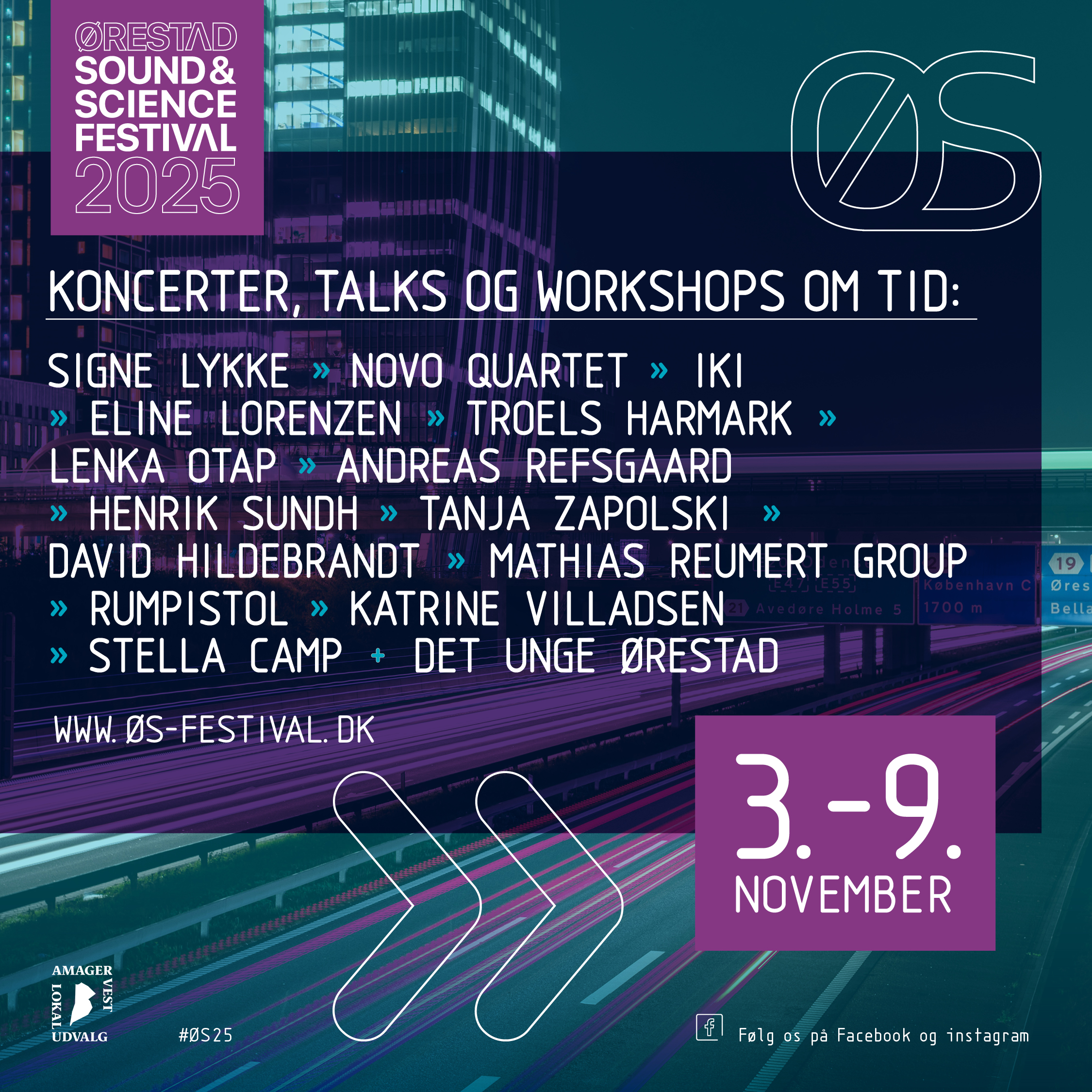 Velkommen til 4. udgave af Ørestad Sound & Science (ØS), som fra den 3. – 9. november vil præsentere ny musik, tankevækkende talks og læringsforløb med tema om TID.